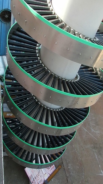 螺旋滾筒輸送機(jī)又稱為螺旋降箱機(jī),通過(guò)將機(jī)架制作成螺旋狀,一般為無(wú)動(dòng)力結(jié)構(gòu),可用于輸送量較大的紙箱、袋裝產(chǎn)品的連續(xù)式下降輸送;