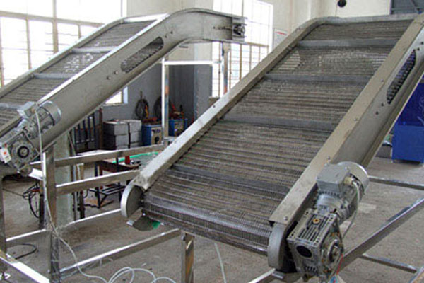 網(wǎng)帶式爬坡輸送機(jī)適用于樓層或高差間的貨物的連續(xù)輸送。傾斜角度。≤30°)的爬坡網(wǎng)帶輸送機(jī),如果貨物底面的摩察力足夠大,可能采用表面有凸點(diǎn)的防滑網(wǎng)帶;大傾角爬坡網(wǎng)帶機(jī)需要在網(wǎng)帶上加擋板或擋邊。從控制角度講,為了防止停機(jī)時(shí)過重的貨物在重力作用下逆行,驅(qū)動(dòng)電機(jī)需要設(shè)計(jì)有剎車功能。爬坡網(wǎng)帶輸送機(jī)是在網(wǎng)帶上加裝檔條、治具、裙邊(擋板)等方式從而使物體能在較大的角度上作提升輸送。具有效率高、輸送快、噪音低、不間斷等特點(diǎn)。特別適合小物料的輸送,如食品、注塑件、粉末以及各種零件行業(yè)。產(chǎn)品說明:爬坡網(wǎng)帶輸送線用于上下樓層、斜坡地形、天橋等具有高差的平面之間的物品輸送。在某些情況下可以代替升降機(jī)使用。斜坡網(wǎng)帶輸送線在輸送顆粒狀物品時(shí)為防止物品因重力沿著皮帶滾落,每隔一段距離可以加一塊擋板,以方便上料需要。