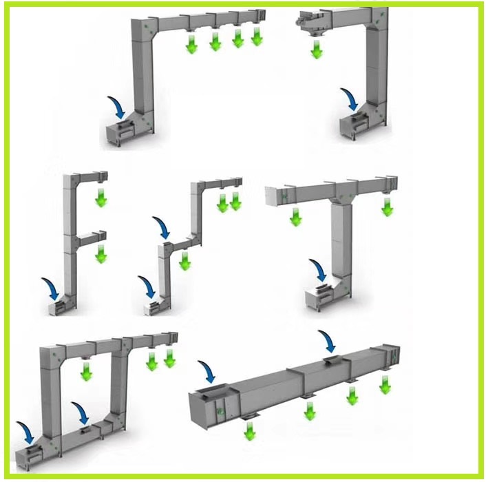 轉(zhuǎn)斗式提升機(jī)又稱為斗提機(jī),鏈斗式提升機(jī),由機(jī)頭、機(jī)尾及豎直段機(jī)筒、傳動(dòng)軸、鏈輪、鏈條、料斗、馬達(dá)、電控幾部分組成,料斗與料斗之間采用無(wú)縫搭接形式,可滿足顆粒、粉末、短條狀、小塊狀物料的連續(xù)式垂直提升輸送,進(jìn)出料口位于設(shè)備的兩側(cè)或同一側(cè),可滿足同一平面的多點(diǎn)進(jìn)料,亦可不同層進(jìn)出料,一層既可以提升到二層,同時(shí)也可以提升到第三層,使得進(jìn)料口及出料口不在同一平面的多點(diǎn)出料問題得到解決;料斗采用了PP塑料材質(zhì),可直接與食品接觸;提升物料與料斗之間相對(duì)靜止,使得物料在提升輸送過程中不會(huì)產(chǎn)生破損,對(duì)破損率要求嚴(yán)格的種子、有機(jī)大米、堅(jiān)果等物料來說,斗式提升機(jī)為較好的選擇;提升高度達(dá)到了40米,提升量≤20立方;我們通過加大了料斗的容積,使得整個(gè)設(shè)備運(yùn)轉(zhuǎn)的速度始終處于低速運(yùn)轉(zhuǎn)狀態(tài),間接的延長(zhǎng)了提升料斗以及鏈條的使用壽命,減少了易損件的損耗,相比較老款斗式提升機(jī)來說降低了設(shè)備的維護(hù)成本,提升了產(chǎn)量,降低了能耗;