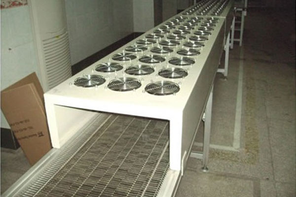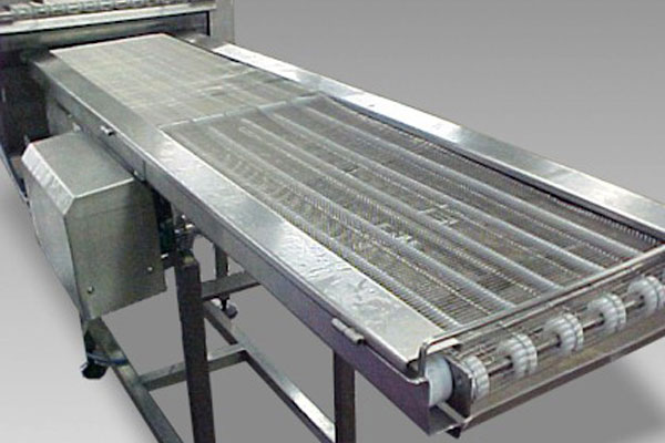 不銹鋼網(wǎng)帶輸送線系金屬網(wǎng)帶輸送機(jī)的一種,采用金屬絲編制的網(wǎng)帶為載體,兩側(cè)加裝鏈條中間用穿銷連接,采用鏈輪傳動(dòng)鏈條從而使網(wǎng)帶沿鏈條傳送方向而運(yùn)動(dòng);也可以直接用特制的包膠輥筒來(lái)直接帶動(dòng)網(wǎng)帶動(dòng)作,前者一般適用于物料重量較重且長(zhǎng)度較長(zhǎng)的輸送形式,用于冷卻、吹干等行業(yè)要求的輸送,故而網(wǎng)帶密度較稀,后者一般采用較為密集的網(wǎng)帶,適用于物料較小輸送距離較短又或特殊物體的輸送,例如帶強(qiáng)磁性物料的輸送。重型網(wǎng)帶輸送機(jī)一般長(zhǎng)度不超過(guò)15米,寬度不超過(guò)2米;輕型不銹鋼網(wǎng)帶輸送機(jī)長(zhǎng)度一般不超過(guò)10米。